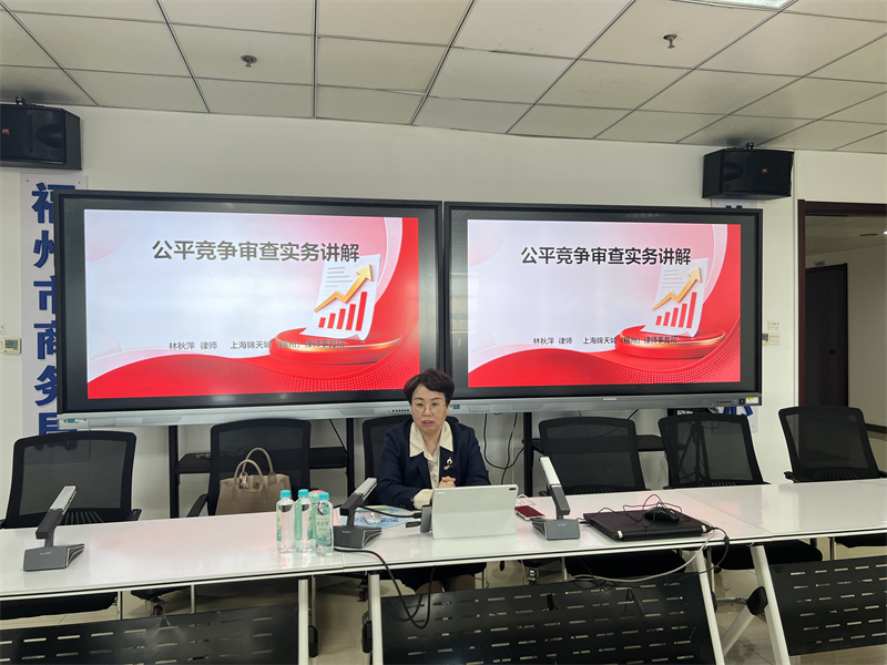 为深入贯彻习近平法治思想,全面落实公平竞争审查制度,进一步提升全局公平竞争审查工作质效,3月25日下午,福州市商务局举办2026年第八期“福州商务讲堂”。本次培训得到福州市公审办的大力支持,特邀上海锦天城(福州)律师事务所林秋萍律师作《公平竞争审查实务讲解》专题辅导,精准解读审查标准、剖析典型案例。