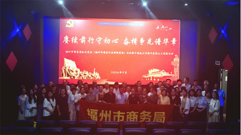 为迎接国庆75周年,巩固拓展学习贯彻习近平新时代中国特色社会主义思想主题教育,扎实推进保密宣传教育等意识形态导向工作,进一步激发党员干部爱国主义情怀,9月20日,福州市商务局组织局机关、下属单位、商务行业两新企业党员代表展开“赓续前行守初心 奋楫争先谱华章”爱国主义教育观影活动。
