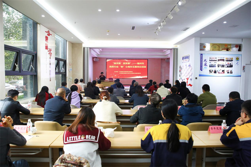 为深入学习贯彻党的二十届三中全会精神,引导非公企业和社会组织在新发展格局下,坚定道路自信、制度自信和发展自信,推动党建业务深度融合。11月22日上午,市商务局在盛辉物流集团党群活动中心开展“新”心相印主题党日活动。活动邀请福州大学经济与管理学院副院长、博士生导师严佳佳教授作《当前宏观经济形势与政策分析》专题辅导讲座。局领导、相关业务处室、对口联系行业商协会企业代表、市商务行业非公企业党组织代表等40余人聆听讲座。