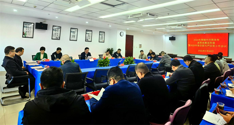 3月20日下午,市商务局召开2024年度述责述廉述党建暨2025年度全面从严治党工作会议,局党组书记、局长林汉隽主持会议并讲话。市管处级领导干部,各党支部、各处室、商务发展促进中心、工青妇群团负责人参加会议。