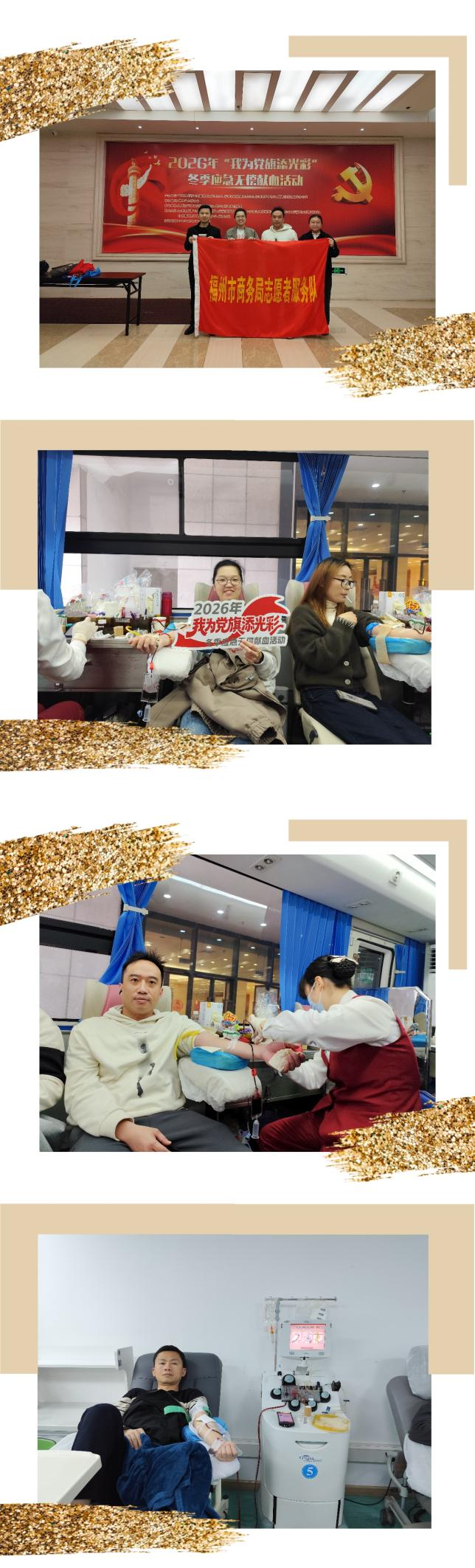 为积极响应市委市直机关工委关于开展2026年“我为党旗添光彩”应急无偿献血活动的号召,2月27日上午,我局组织干部职工,前往东部办公区多功能厅西侧集中献血点,参加无偿献血活动,以实际行动践行初心使命,展现商务干部的责任担当。
